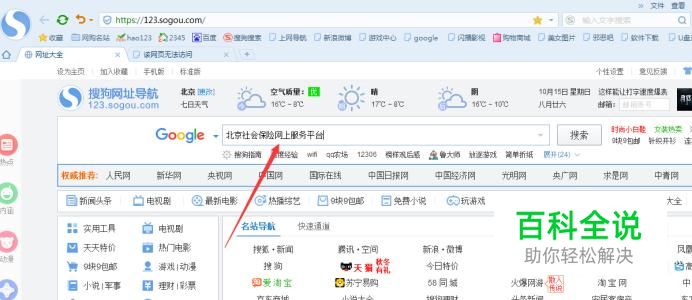 首先我们开大电脑在搜索北京社会保险网上服务平台,如图所示