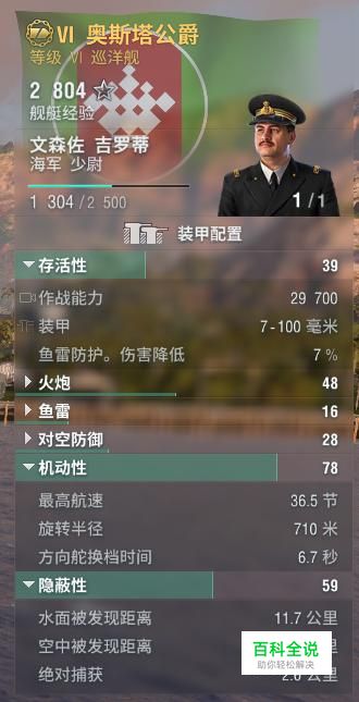 可以从图中看到,作为意大利海军6级船的奥斯塔公爵,其29700血量在巡洋舰中属于中等偏差的。然而在转舵速度和加速度上则非常强。在鱼雷防护上,奥斯塔的高速低护甲导致低达7%的鱼雷减伤,让她的抗航母和驱逐能力变得非常弱,也就是说,奥斯塔公爵的首要思路是进行高速移动并在后排输出。