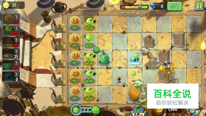 使用射手家族,一开始放一堆向日葵,僵尸出现后放个寒冰或炸弹,再放坚果,就过了。