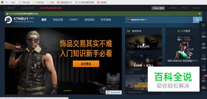 首先,小编这里以stmbuy为例作为第三方交易平台来举例吧,这里我们首先打开stmbuy的主页。