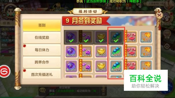 在线奖励: 当玩家当天在线时间超过5分钟,此时可以在福利活动→在线奖励页面领取5分钟奖励,该奖励包括5颗初级宠物经验丹。
