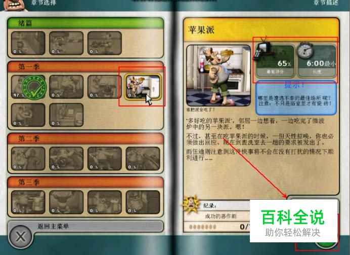点选第一季第四集苹果派,本集中我们的最低评分需要达到65%,时限为6分钟。好了,开始我们整蛊之旅吧!