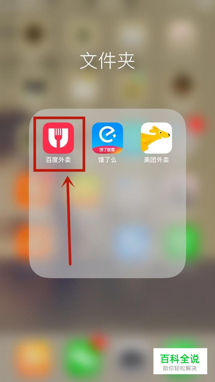 首先在手机桌面上找到“百度外卖”APP,并点击登入,如下图所示。 小贴士: 为了方便大家寻找APP,建议大家把同一种类型的APP放到同一个文件夹为宜。