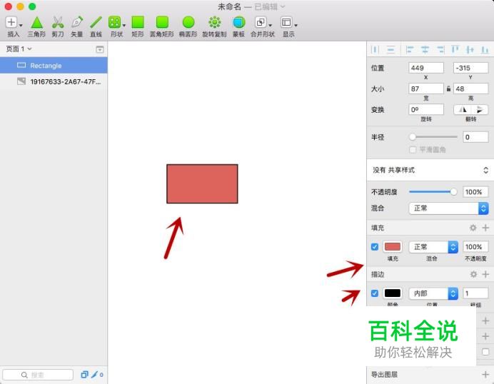 点选矩形后出现属性栏,对填充进行更改,为了让质感更好,可以添加描边。