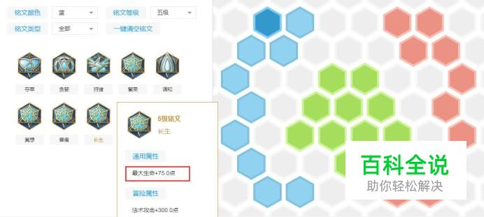王者荣耀通用铭文,一般是全英雄都可以使用的属性,因此蓝色我们选择最基础的“五级长生”,直接增加最大生命值。