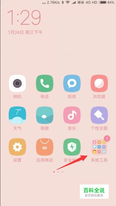 返回到手机的主界面,在手机应用中找到“系统工具”的图标点击进入。