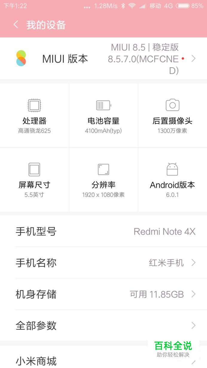 我给大家演示的是一部红米Note4X手机,大家可以看到我的手机的版本是miui8.