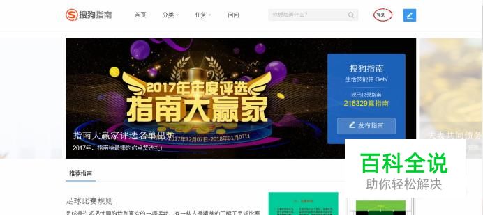 进入指南的主页,右上角圆圈处有【登录】两字,点击登录。