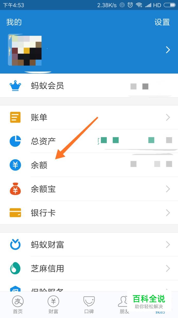 首先打开支付宝,点击“我的”,再点进余额一栏里。