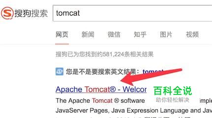 打开搜狗搜索,输入tomcat,搜索到结果,点击打开第一项,