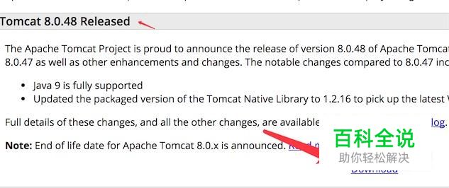 打开官方网站后,在Tomcat 8.0.48的版本下,点击‘download’按钮。