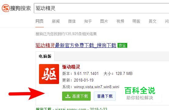 搜狗搜索 驱动精灵 ,如图所示,下载后并完成安装。