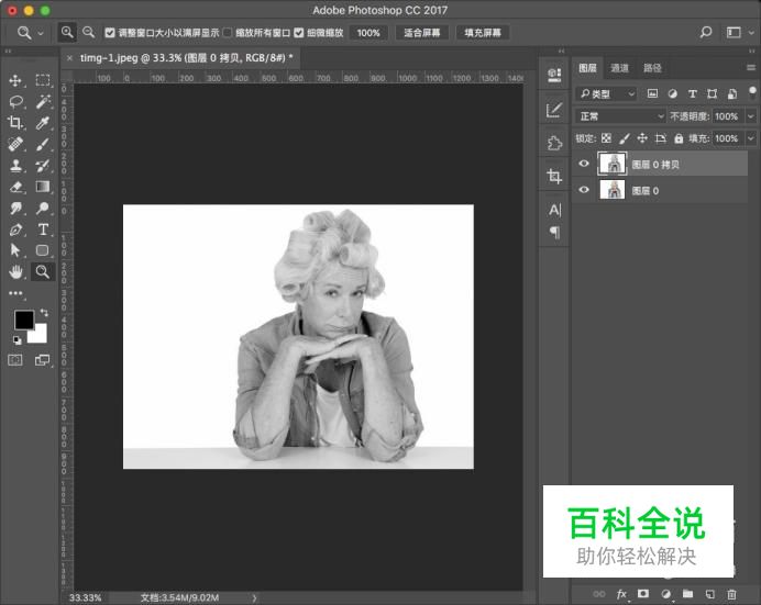 点选最上方的拷贝图层,ctrl+shift+u进行去色处理,去色处理后照片会变为黑白。