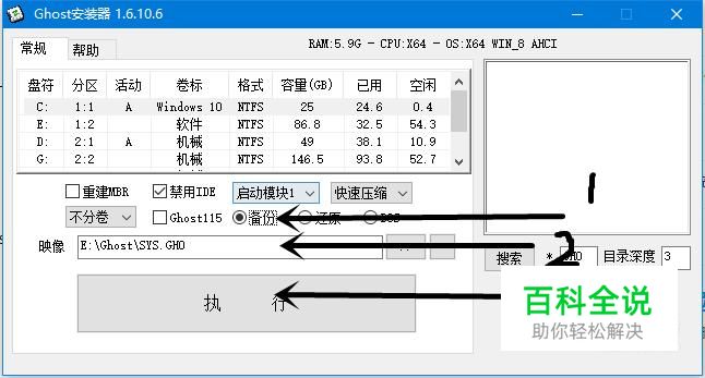系统自动备份 依次进行:选择 备份→选择备份位置→执行。