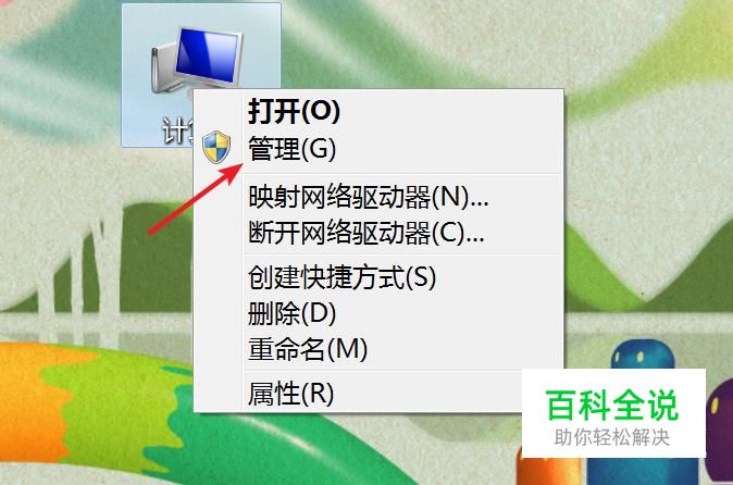 右键桌面上的‘计算机’,在右键菜单上点击‘管理’选项。