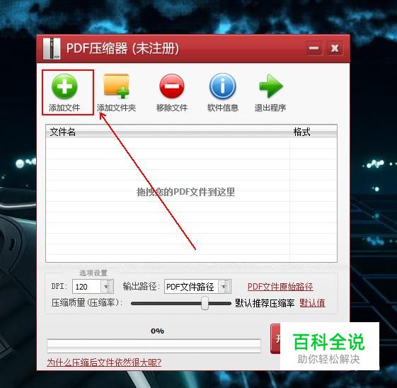 在pdf压缩器中单击左上角的“添加文件”按钮。