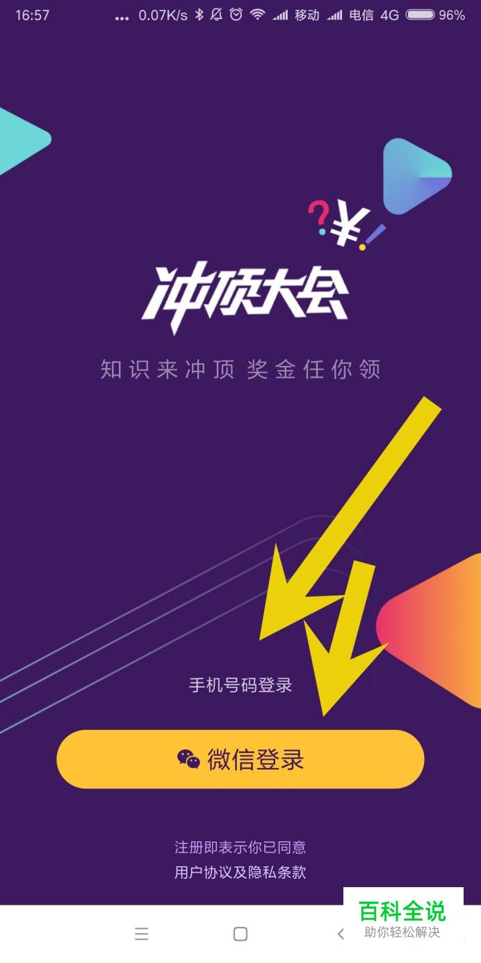 接着我们需要登录冲顶大会,我们可以使用自己的手机号码登录,也可以使用微信登录。
