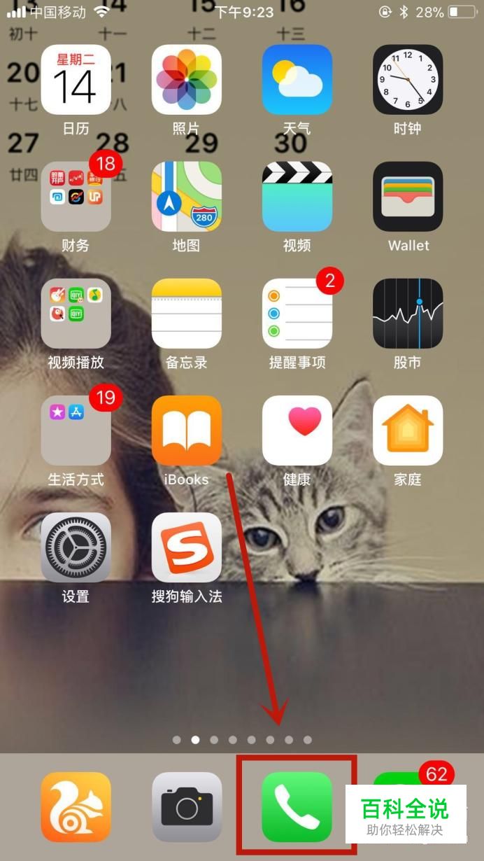 首先在手机桌面上找到“电话图标”,如下图所示。