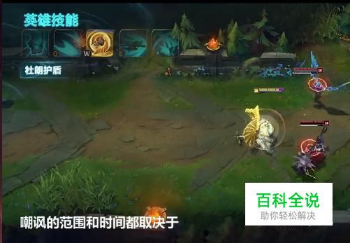 q技能 这个技能会朝目标区域施放两道风,并汇集到目标区域,对敌人造成一定的伤害,这个风汇集到目标区域会对目标区域有一个不错的百分比魔法伤害和固定的法术强度的伤害,这个是加里奥的核心技能,要主点的。