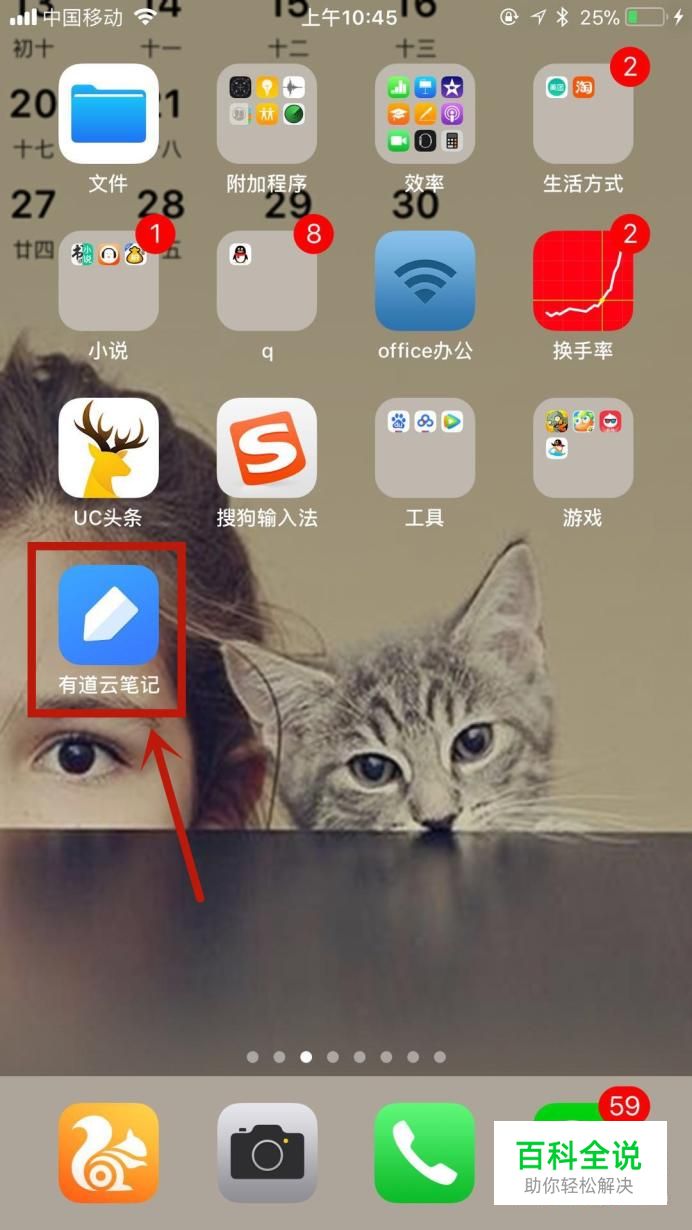 首先在桌面上找到“有道云笔记”并点击它,如下图所示。