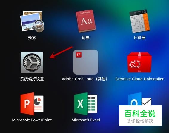 进入MAC主界面,按F4进入应用界面,选择“系统偏好设置”