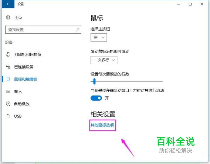 在这里,我们可以设置鼠标主按键是左还是右,一般我们习惯是左边,如图所示。