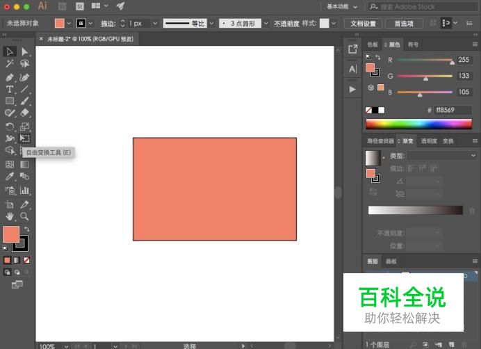 绘制形状完成后,在左侧工具栏中选择“自由变换工具”