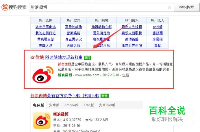 打开搜狗搜索“新浪微博”,一定要认准官网标识哦