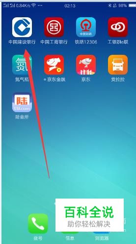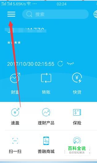点击进入手机建设银行,在手机银行页面后,点击左上角的选项