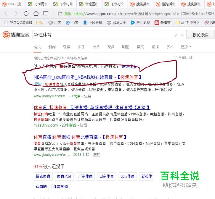 首先打开浏览器,进入主页,搜索“急速体育”的内容