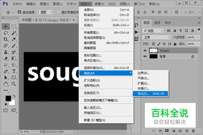 按住Ctrl键点击文字图层的缩略图调出选区;然后,羽化选区,参数如图。