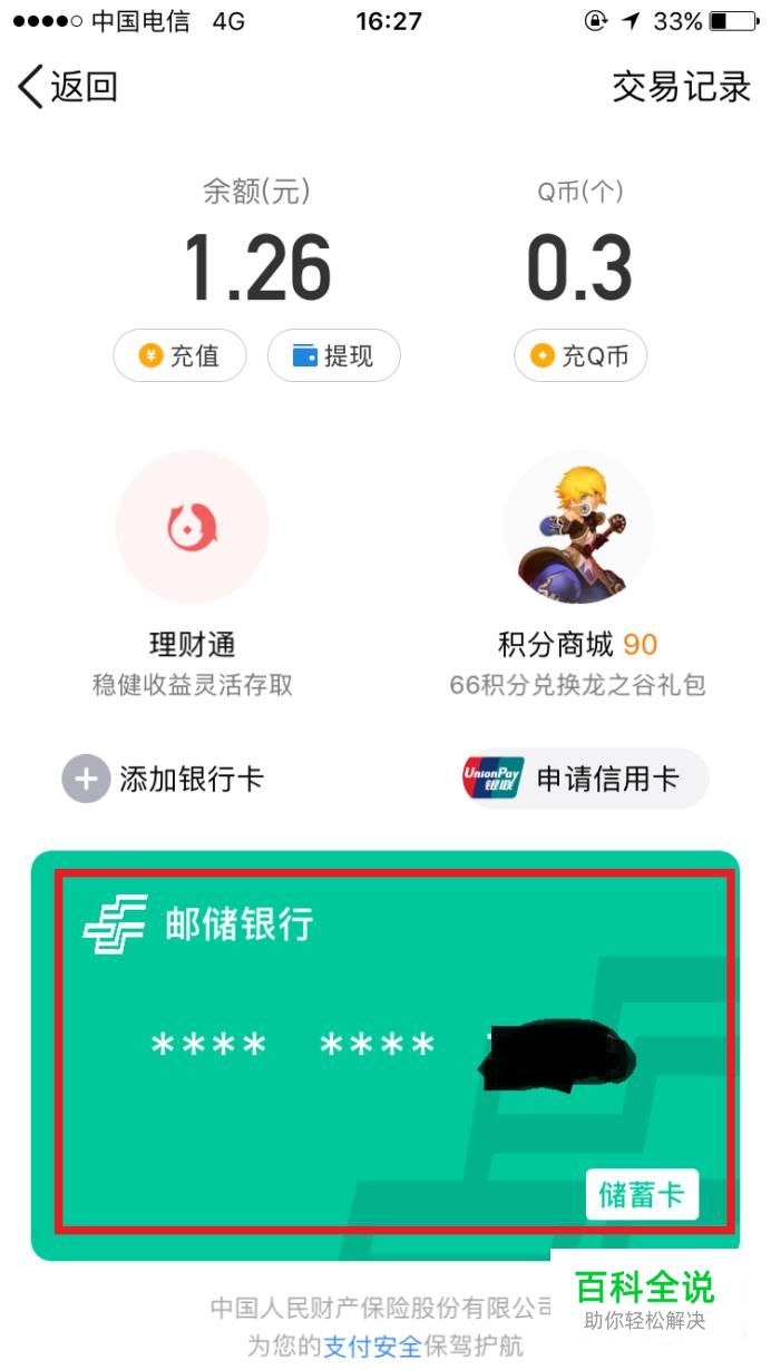 在新的页面,我们可以看到下方绿色的银行卡信息,点击银行卡。