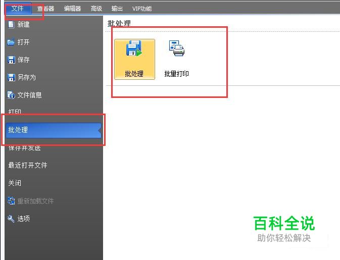 击左上角的“文件”--”批处理”-再点击右侧“批处理“。