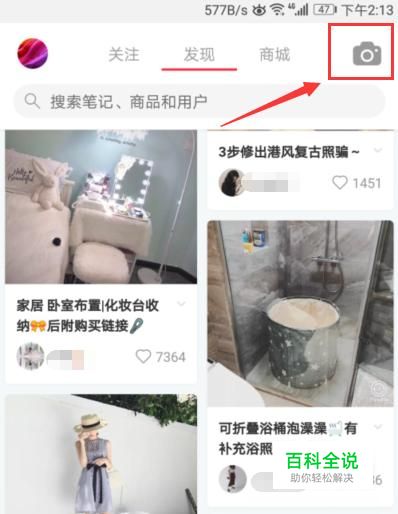 我们先来到小红书里面,在这里面,我们看到摄像机图标,点击下它,如图所示。