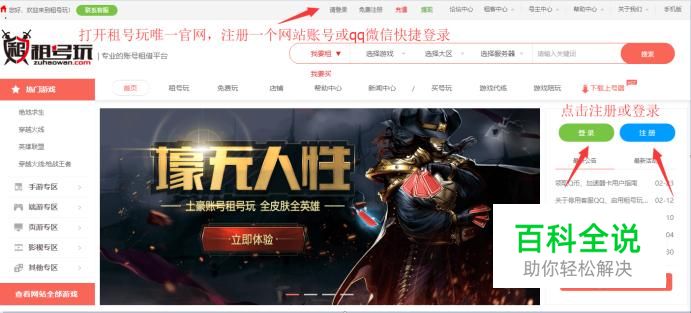 打开租号玩唯一官网,注册一个网站账号或qq微信快捷登录。