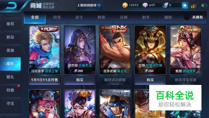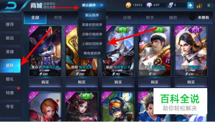 登录游戏后,进入商城,选择皮肤,在上面选择按时间排序,此时是从最早发布的开始,再点击一下按时间排序,皮肤排列顺序就会从最新的开始了;