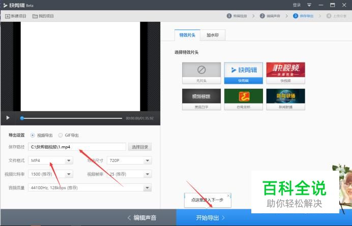 音乐添加完成后点击保存导出,在左设置好保存的参数,点击右下角开始导出。