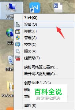 打开电脑,对着“计算器”右键,选择“设备”进入