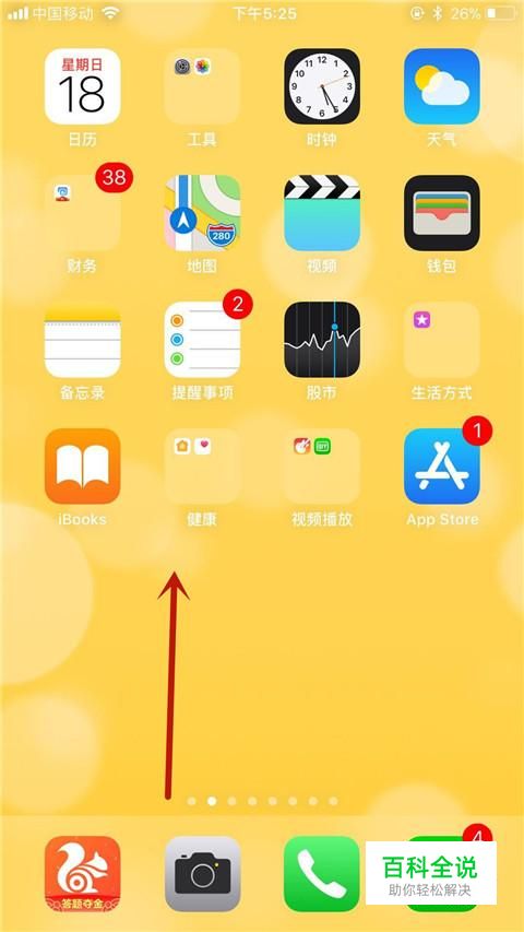 然后回到主界面,把屏幕往上滑动,如下图所示。