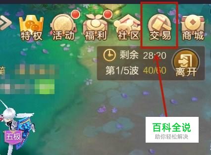 进入游戏以后点击屏幕上方的交易,如下图所示。