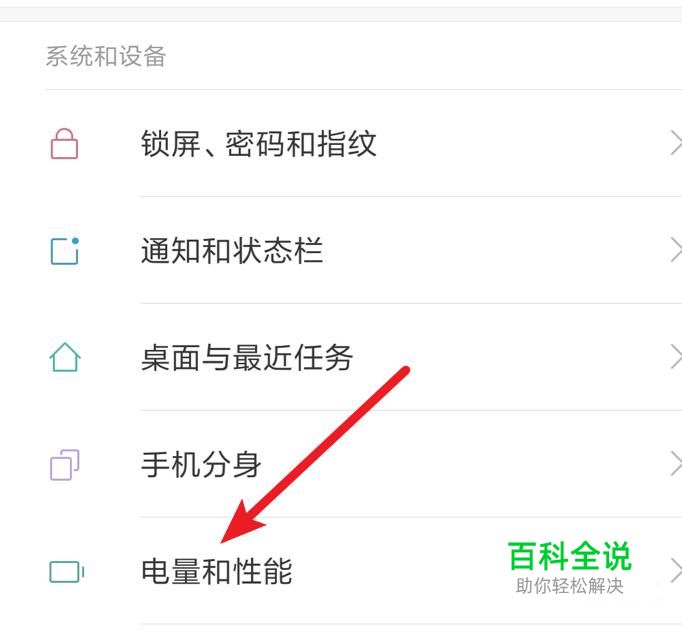 打开手机设置,点击打开‘电量和性能’