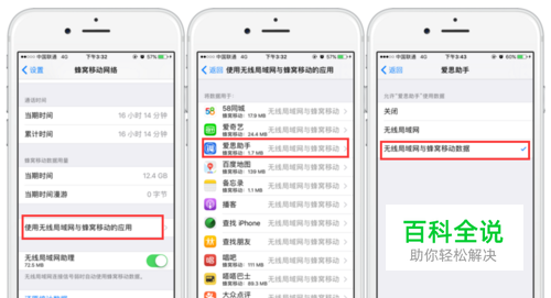 1、首先打开“设置-蜂窝移动网络-使用无线局域网与蜂窝移动的应用”,找到爱思助手并点击进入,选择允许爱思助手使用数据后,退出并重新打开爱思助手即可正常显示; 若是打开“使用无线局域网与蜂窝移动的应用”未看到爱思助手,点击里面的任意应用进去关掉其使用数据权限,再退出并重新打开爱思助手移动端,系统将会提示您是否允许爱思助手访问您的网络,点击允许之后爱思助手将会正常显示。