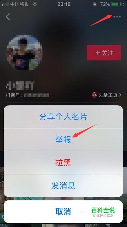 登录抖音后的点开你想要举报投诉的人的个人主页,点击右上角的小圆点,然后就会出现举报的入口。