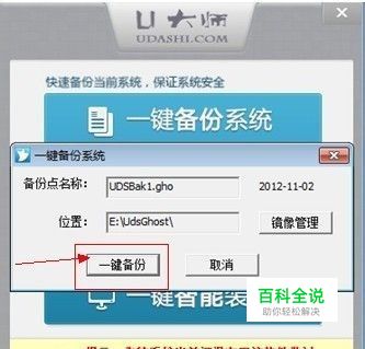 点击“一键备份”按钮,弹出确认框,如图: