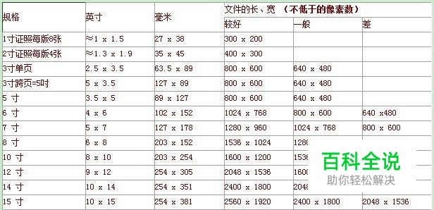 数码冲印照片像素要求 图片的像素,也即通常所说的分辨率,是反映照片文件的一个重要指标。要冲印出高质量、高清晰度的照片,图片的分辨率是重中之重。图片的分辨率越高,单位面积的像素密度就越大,图片就越清晰、越细腻;反之,如果图片的像素不够高,那冲印出的相片就可能模糊不清,色彩也不够鲜明,极有可能使照片造成一定程度的失真。若是您图片的像素过低,低到根本无法冲印时,若您仍决定要冲印,冲印出来的品质会出现色彩浓淡不匀,甚至边缘不整齐的现象。 为保证您冲印出的照片清晰靓丽,我们对您提供的图片的像素有一定的建议要求,以下是一些参考数据: 说明: 较好:照片的色彩还原性和清晰度都比较好,能冲印出原图片的理想效果。 一般:由于像素偏低会对照片质量产生轻微的影响, 但并不影响冲印。 差: 能够明显感觉到分辨率低对照片的影响, 但仍可以冲印输出,但照片有可能会模糊不清楚。 举例:由上表可知,如果您打算冲印6吋照片,则至少要提交像素大于800 x 600的图片文件,而若要达到更好效果,则像素最好在1024 x 768以上。 补充说明: 某个尺寸(Xinch×Yinch)的相片,需要的象素很好算,就是X×300×Y×300/1024/1024,单位百万象素(MP,mega pixel)。所以,这样算起来,常见的6*4的相片需要就是大概2MP即可。那么为什么那么多人说6R的相片,2MP不够呢?其实,大家错了!6R的相片和6寸的相片不是一回事!!!6R相片是6×8inch2的,或者叫做8寸相片!原来相片有两种叫法,叫某寸就是指的长边是这么多寸;叫某R(常见的有4R、6R等),就是指的短边是这么多寸!! 讲多少寸,是指长边的英寸数,比如5 x 3.5就是5寸。 讲多少R,指短边的英寸数,比如4R是6 X 4寸,而3R就是5寸的5 X 3.5寸 胶片机的pp,冲洗6寸不用裁剪,因为胶片是3:2的,6寸正好也是(6×4inch); 常见的数码的pp,冲洗6D的不用裁减,因为数码是4:3的,6D正好也是(6:4.5inch) 数码照片还有一个几D,例如4D、5D,那是数码比例,普通的照片比例是 2 :3,而数码比例则是2.25 :3,也就是说,4D的照片尺寸是4.5x6寸。