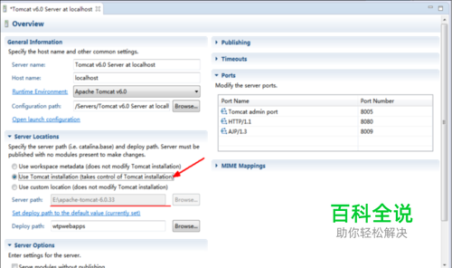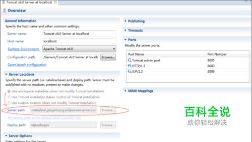 项目部署好了,在tomcat安装目录下的webapps里没有找到发布的项目文件,查看详细信息,发现tomcat有默认的发布路径。我想修改但是修改的单选按钮置灰了,没办法修改,如下图: