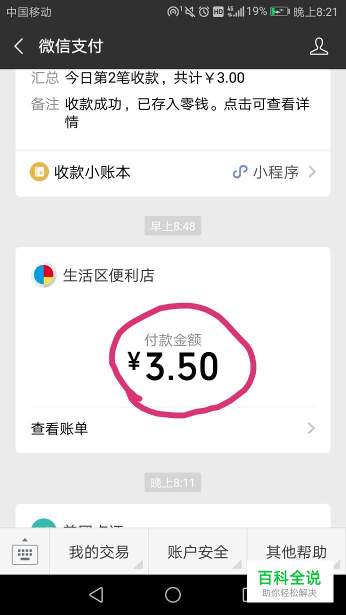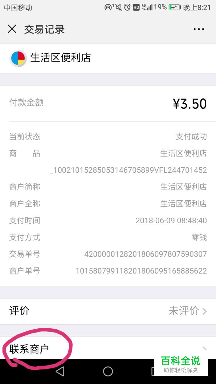 首先在微信支付里找到你要联系的商家,点击该账单,如图。