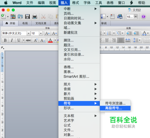 点击其选项中的 符号 ,再点击子选项中的 高级符号 。