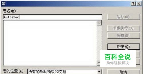 第1步,在菜单栏依次单击“工具”→“宏”→“宏”命令,打开“宏”对话框。在“宏名”编辑框中输入宏的名称(例如Autoexec),并单击“创建”按钮,如图2008060601所示。 图2008060601“宏”对话框