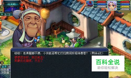 3、这个任务是婆婆叫我们去帮忙打扫,系统会给你一个和1J法宝一样的织女扇,到指定的坐标去打扫,右击即可。 打扫的过程中会出现战斗,怪物的特点是ST,变身后就会冲着BB连击或者象形,不愧是BB杀手啊。如下图。 镇山太守刘伯钦会让我们摘菜,有白菜啦,萝卜啦,南瓜啦,白菜在后院,南瓜在前面,萝卜就在婆婆的前面,摘菜的时候也会碰怪。 怪物特点和婆婆的打扫任务的怪物是一样的。 这个任务是婆婆叫我们去帮忙打扫,系统会给你一个和1J法宝一样的织女扇,到指定的坐标去打扫,右击即可。 打扫的过程中会出现战斗,怪物的特点是ST,变身后就会冲着BB连击或者象形,不愧是BB杀手啊。 镇山太守刘伯钦会让我们摘菜,有白菜啦,萝卜啦,南瓜啦,白菜在后院,南瓜在前面,萝卜就在婆婆的前面,摘菜的时候也会碰怪。 怪物特点和婆婆的打扫任务的怪物是一样的。